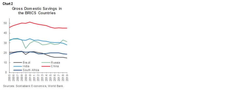 Policies that relate to internal circulation will primarily focus on raising household incomes and the role of the consumer in the economy. Higher wages can be achieved by reforms of the land and residency system that would support urbanization. Improvements to the social safety net would lower China’s relatively high savings rate (chart 2), further supporting consumer spending prospects.