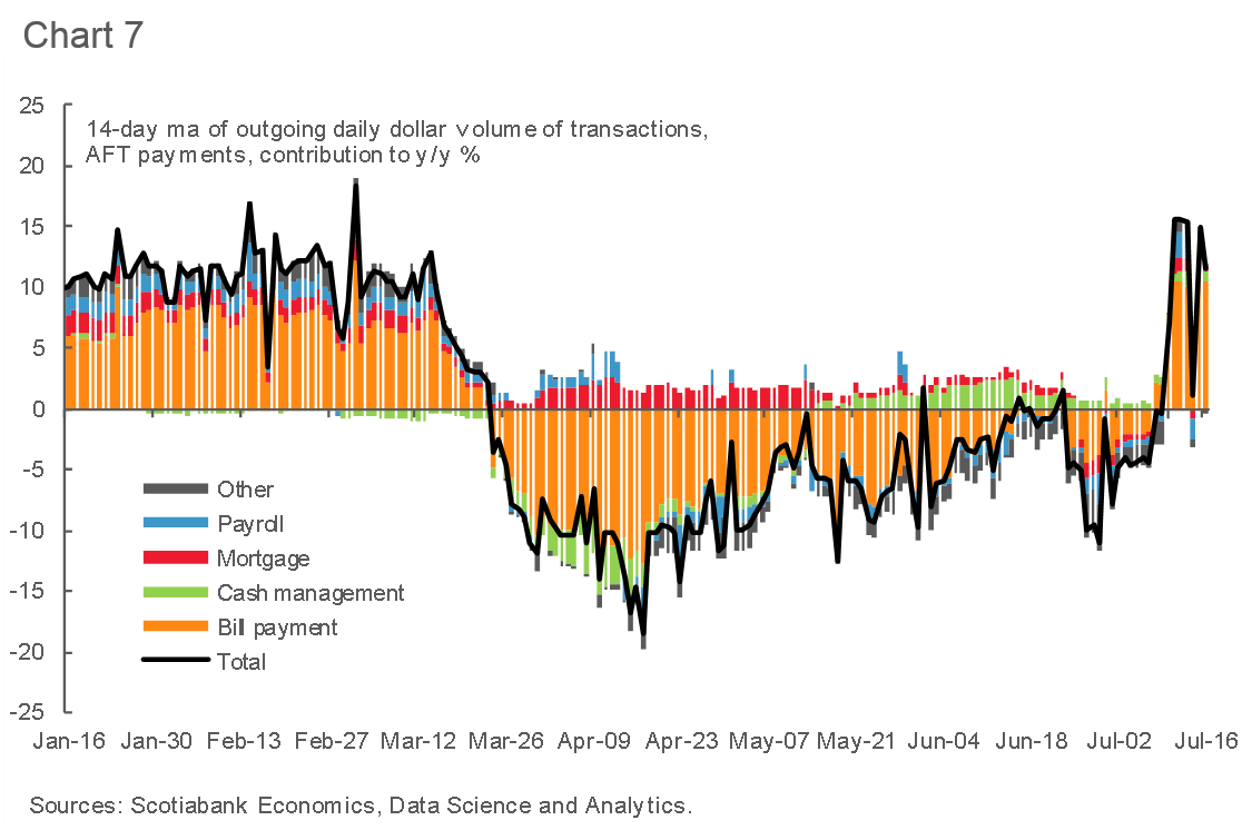 - Outgoing AFT jumped higher in July on higher general bill payments (Chart 7):