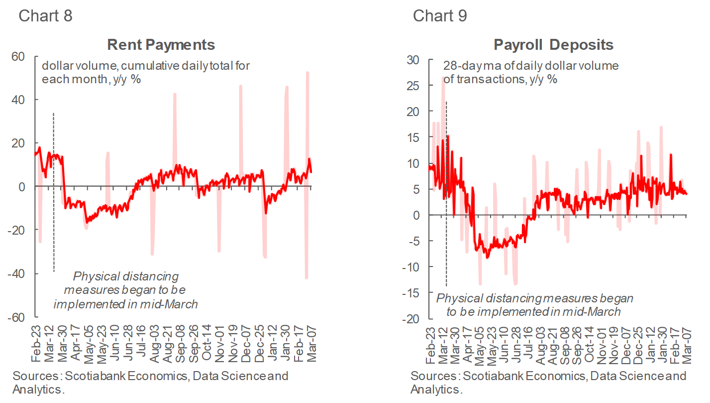 Growth in outgoing payments remained stable, with steady payroll and rent payments, the latter likely in response to the pickup in the emergency rent subsidy program (CERS) (Charts 7-9).