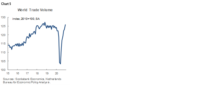 Canadian GDP: 5.3%, 4.3%. We have again revised 2020Q4 upward to 7.8% and revised 2021Q1 sharply higher from -2.1% to 0.6%.