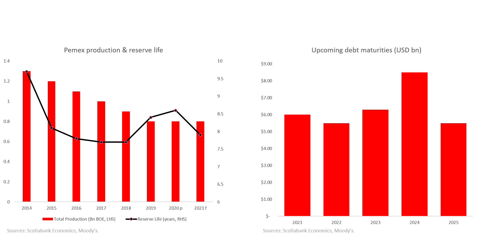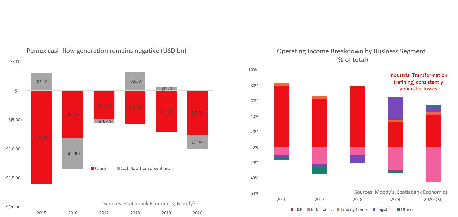 Support for Pemex, which is not only the world’s most indebted oil company, but also fails to generate positive cash flows (in part due to a very onerous tax burden).