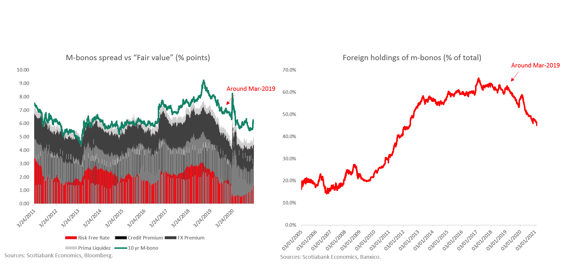 10yr M-bonos look “cheap to fair value”, but constant decline in foreign participation suggests downgrades being priced-in