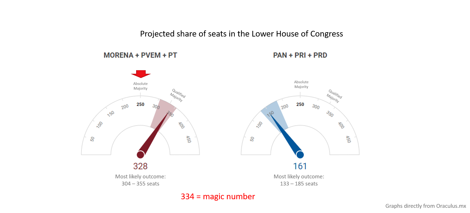 Morena looks likely to retain at least an absolute majority, could get to a “Constitutional”/ Qualified one