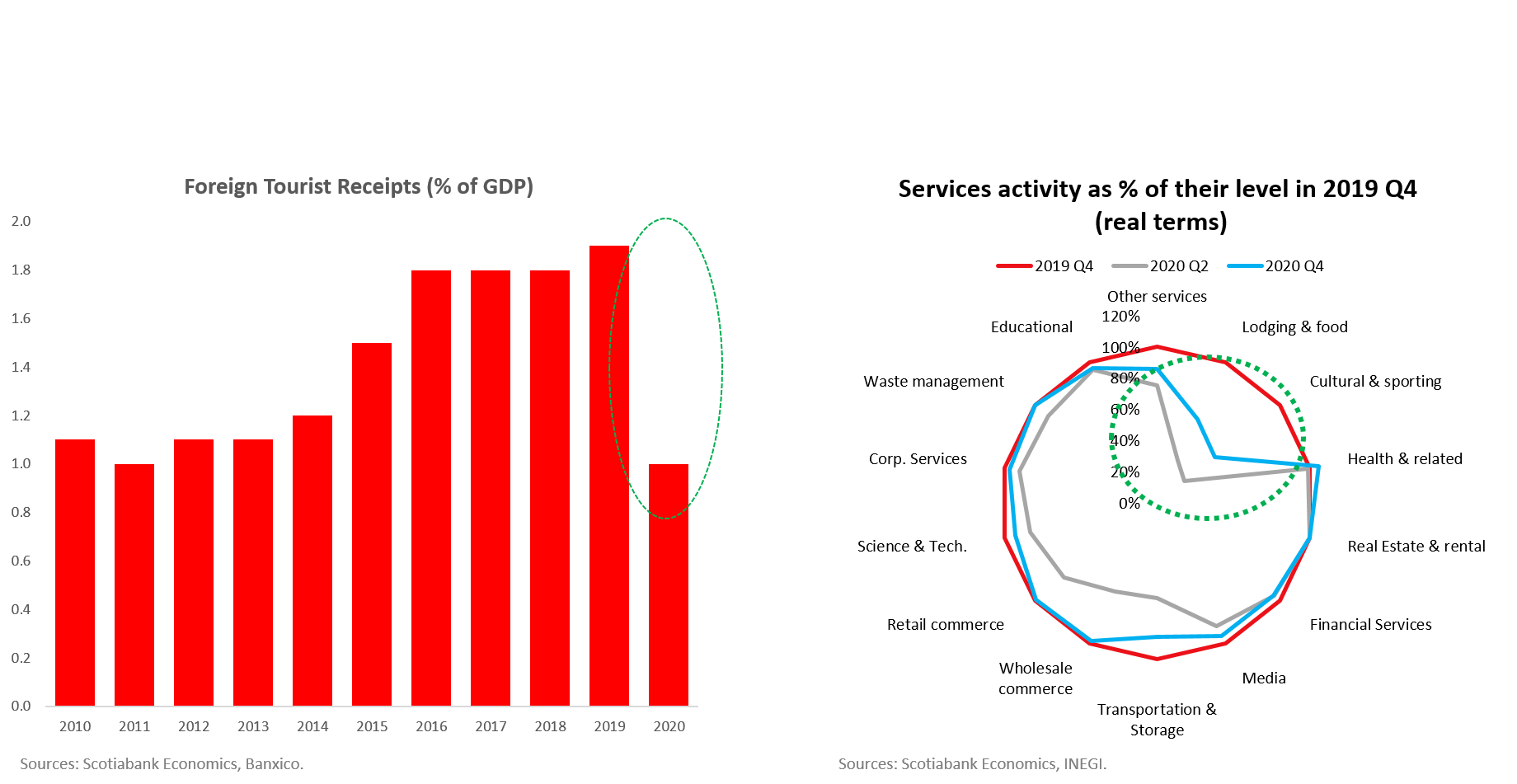 Base effects / vaccination should drive a big jump in 2021 GDP; particularly in tourism