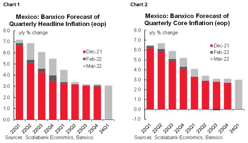 - In explaining the move, the central bank cited ongoing price pressures and geopolitical factors driving up global commodity prices that threaten to unleash inflation expectations. Banxico has significantly raised its forecast of inflation.