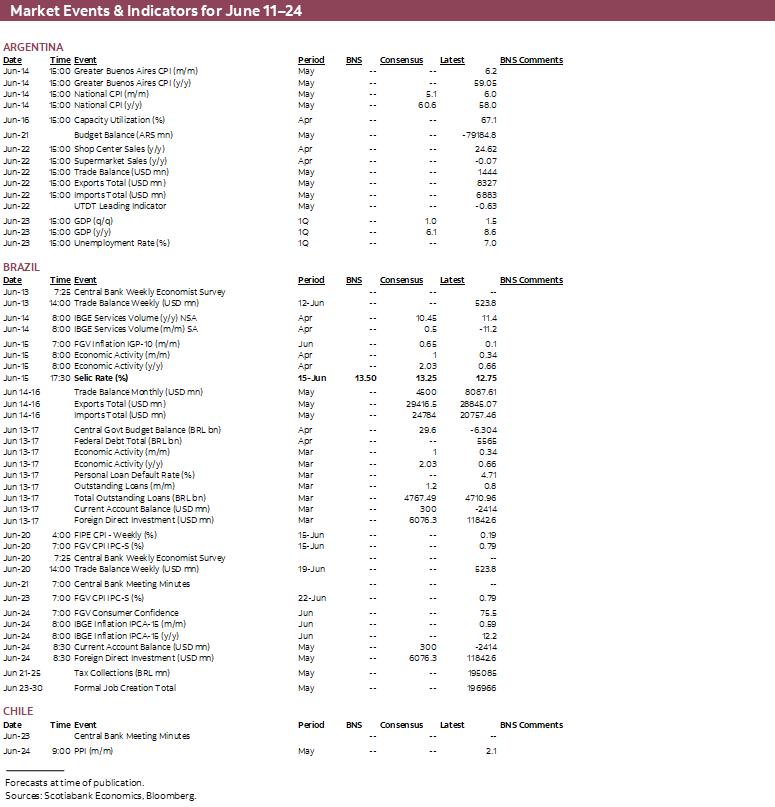 - A comprehensive risk calendar with selected highlights for the period June 11–24 across the Pacific Alliance countries, plus their regional neighbours Argentina and Brazil.
