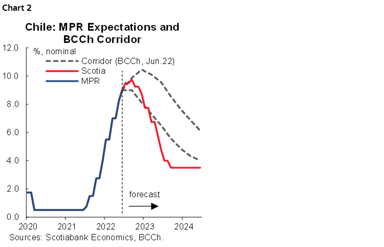On Tuesday, June 7, the central bank (BCCh) increased the benchmark rate to 9.0%, in line with market and our expectations. The central bank anticipates further increases in coming meetings. With this, we expect a terminal rate of around 9.75% in this adjustment process.