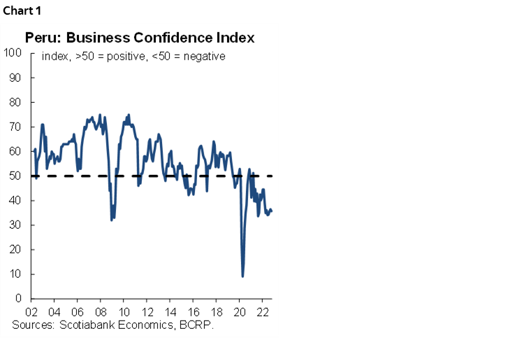 Private investment (-0.8%), as expected, showed a drop, explained by a decrease in mining investment (-12.5%) after the completion of the Quellaveco copper megaproject, which required an investment of USD5bn and began operations in September. Non-mining investment (+0.8%) remained stagnant, in line with the evolution of business expectations that have been negative for 18 consecutive months (chart 1).