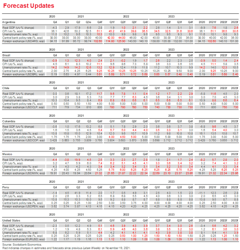 As 2021 draws to a close, it is a good time to review where Latam economies have been and what lies ahead. This Janus-faced approach should provide a useful reference with which to assess risks going forward. The starting point for this exercise is the latest forecast updates made by Scotiabank economists in the region.