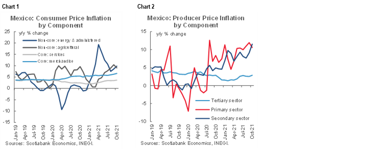 - Second, with markets expecting future Governor Veronica Rodriguez to be more dovish than current Governor Diaz de Leon, we think the current Board would be reluctant to undermine do her credibility by hiking 50 bps, only to then have the new Board reduce the pace of hikes.