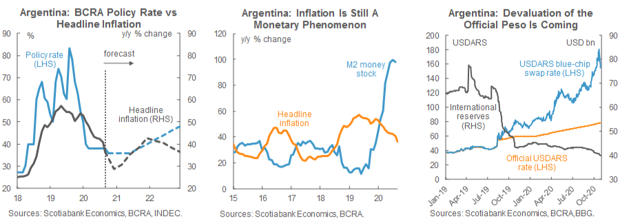 The fortnight ahead is dominated by real-economy data for the auto sector in October (Wednesday, Nov. 4) followed by industrial production and construction activity (Thursday, Nov. 5) numbers for September; but the bigger attention-getter will be October inflation, out on Thursday, November 12. After a 2.84% m/m print in September, we expect inflation stay around 3.00% m/m through the end of the year and into 2021, higher than the 2.50% m/m average we previously forecast for Q4-2020. This would bring year-end inflation in at 33.63% y/y, nearly 5 ppts higher than the 28.70% y/y we forecast in our October 18 Latam Weekly and Global Forecast Tables. We project monthly inflation to persist around this rate through to Q3-2020 before beginning to slow when, we hope, stabilization measures begin to be taken under a credible IMF-supported adjusted program.