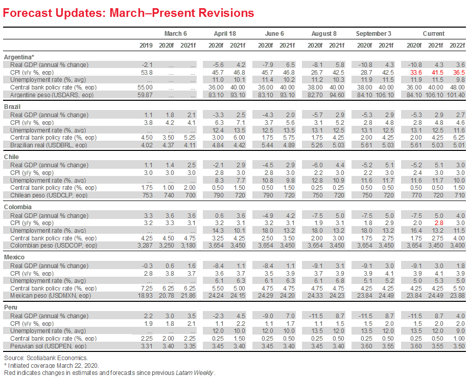 After comprehensive updates at the beginning of October, our forecasts are nearly unchanged in this Latam Weekly. Argentina’s inflation profile has been raised a touch, reflecting an expectation of even more pass-through effects from the weakening peso.