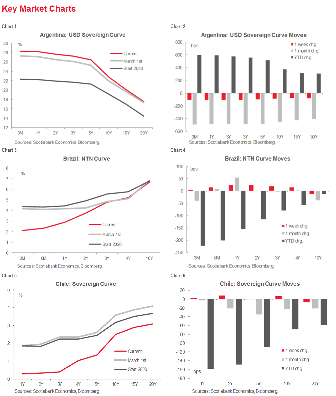 Meanwhile, in the FX market, we have seen sales of USD in anticipation of the possible liquidation of foreign assets currently held by AFPs. These flows, along with the constant presence of the Ministry of Finance selling USD in the spot market, might continue to put a lid on USDCLP rallies, but we still think that levels around USDCLP 780 are good entry points for long USD positions.