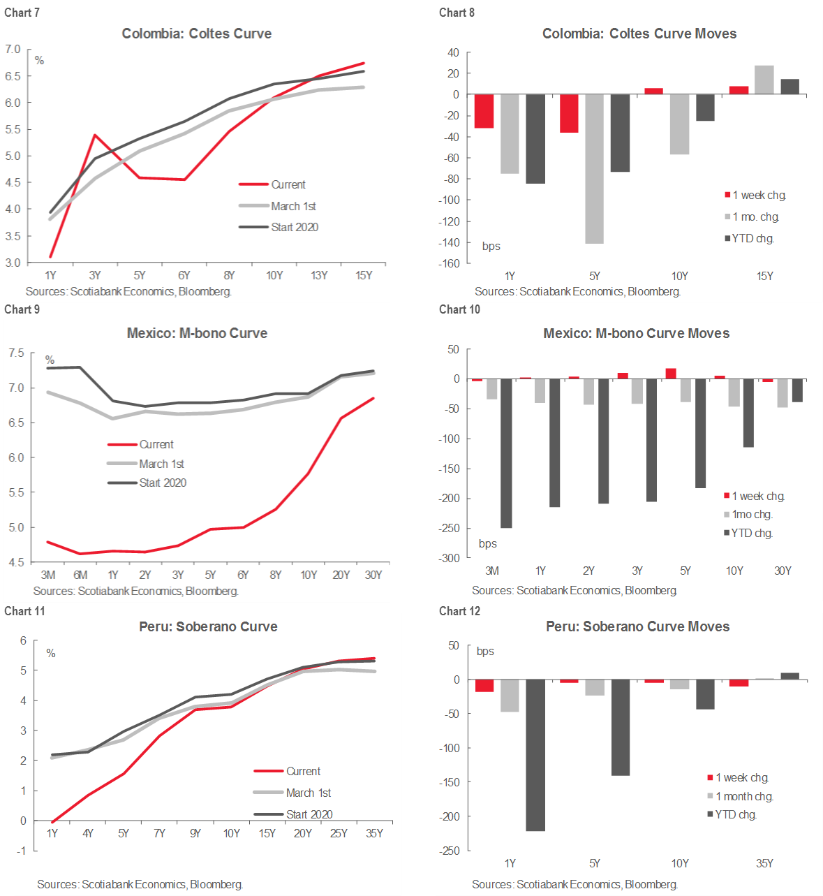 Colombia. In Colombia, the swap curve continues to price a terminal level for the intervention rate at 2.00%. While the market has moved over the past week to pricing a -50 bps cut at the next meeting on July 31, our team in Bogota believes the split decision at the most recent meeting implies “gradualism” remains the name of BanRep’s game and the move to 2.00% will be implemented through two -25 bps cuts, one at each of the next two meetings.