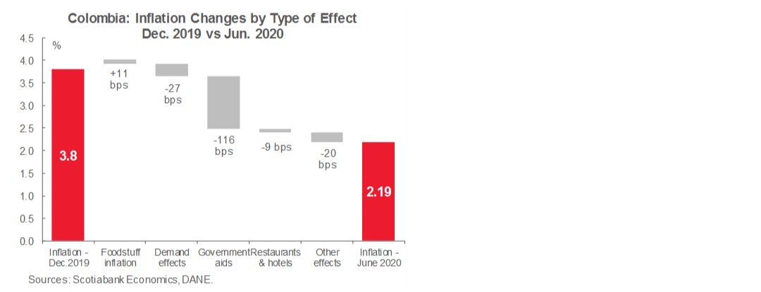 In this context, the strategy of Colombia's central bank has been to provide ample liquidity to markets to avoid a financial crisis in a "whatever it takes" approach. In contrast, in terms of conventional monetary policy, BanRep has decided to take a more gradual line and has cut policy rates initially at a -50 bps pace (in March, April, and May) and has more recently reduced the speed to a -25 bps cut in June, which brought the monetary policy rate to 2.50% as BanRep entered a very data-dependent phase for the coming months.