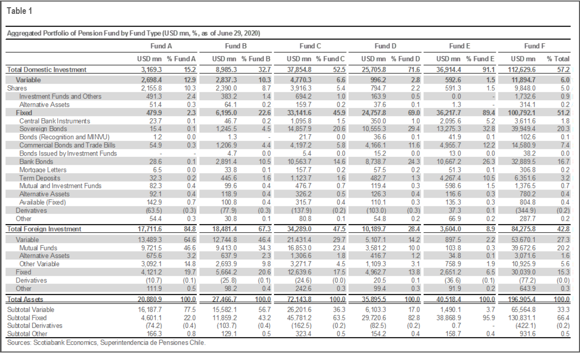 It is difficult at this point to estimate how much money would be withdrawn from the AFPs as a result of this measure. The willingness of individuals to make a withdrawal from their retirement accounts varies a lot depending on their age group, income bracket, and overall financial situation. We could argue, however, that in general terms, people who are closer to their retirement ages should be more likely to tap into these funds. But we must also consider that the effects of the crisis have been disproportionately heavy on youth employment and this cohort could be more inclined to use these resources during the current difficult financial conditions.