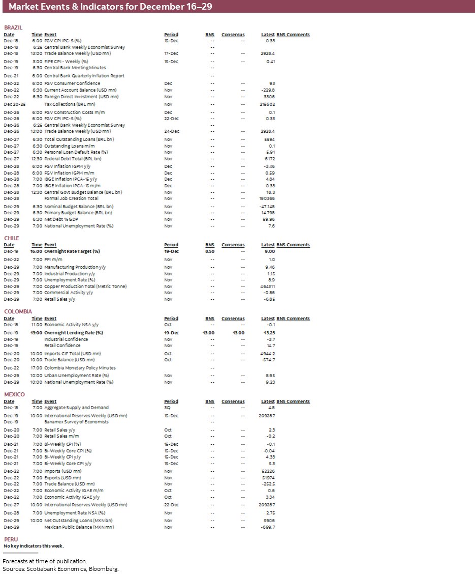 - A comprehensive risk calendar with selected highlights for the period December 16–29 across the Pacific Alliance countries and Brazil.