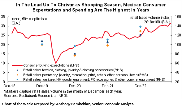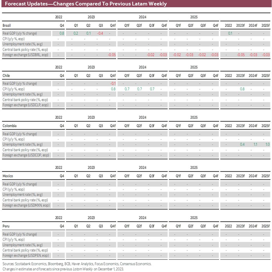 - After Banxico’s relatively hawkish rate hold, Mexico’s calendar is packed with data, including key H1-Dec inflation figures that are in focus after the bank’s upward revisions to its inflation forecasts. Retail sales, economic activity, and international trade data are also on tap. Colombia and Brazil economic activity data are also out next week, and their respective central banks will publish minutes to their December meetings.