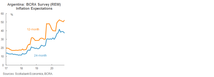 Second, neither we nor the consensus of analysts expect quick agreement on a new IMF program. The IMF staff statement issued when the mission left Buenos Aires on November 20 made for bleak reading: despite initial talks in September and October, it appears that little progress was made during the Fund’s visit on crafting a consensus around a package of policy reforms to stabilize the economy. As a result, we’re unlikely to see a conclusion to these negotiations until well into Q1-2021.