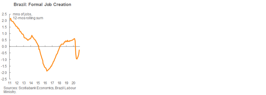 - Monthly GDP numbers are below end-2019 by no more than about -7% y/y in any of the Latam-6, with Brazil’s total economic activity readings nearly fully restored to pre-pandemic levels.