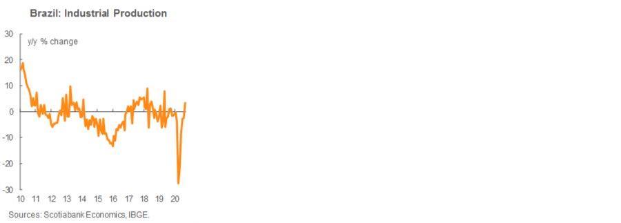 - In contrast, in Brazil, our projected forecast for the contraction in 2020 GDP has been pared from -5.3% y/y to -3.8% y/y and end-2020 inflation has been pushed up from 2.8% y/y to 4.2% y/y.