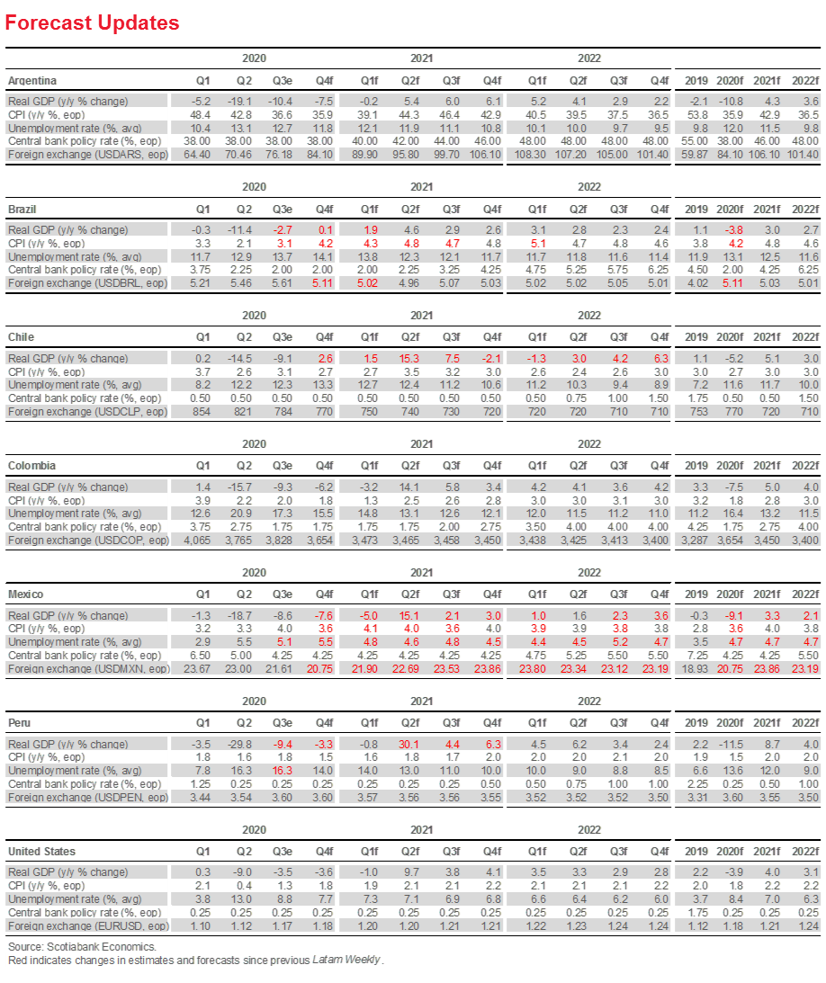 While our forecast revisions remain parsimonious in this edition of the Latam Weekly, with our views largely settled on 2020 and well into 2021, two substantial changes have been introduced to our projections in the Forecast Update on p. 2:
