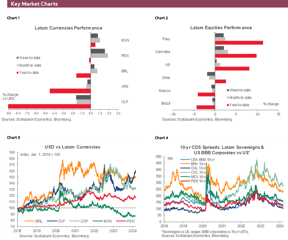 - The key Latam week did not disappoint. Thursday and Friday CPI beats in Colombia and Chile, and a surprising rate hold by the BCRP caught local markets off-guard.