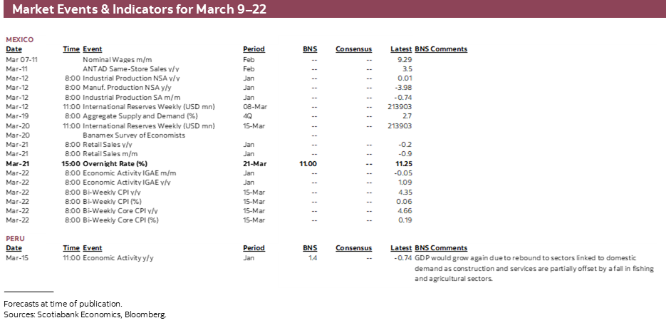 - Peru GDP and Colombian macro figures for January are the Pacific Alliance data highlight. In Brazil, we get the last of the key regional inflation figures for February.