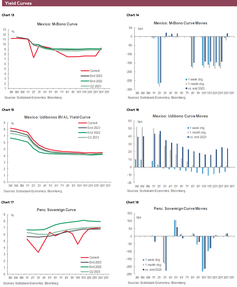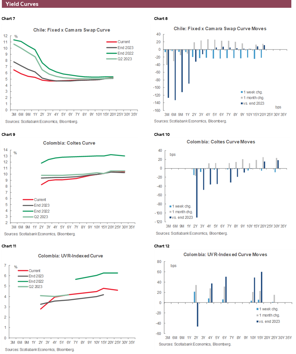 The key Latam week did not disappoint. Although things started out quietly with no major data of note, Thursday and Friday CPI beats in Colombia and Chile, and a surprising rate hold by the BCRP caught local markets off-guard and heightened uncertainty around the path for monetary policy in the region. In contrast, Mexican inflation readings were aligned with bi-weekly data released two weeks prior, with limited takeaways for rate expectations.