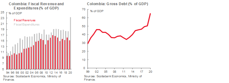 2. An attempt to pass a Colombian standard tax reform to put some band-aids to the revenue side, while maintaining the extra social expenditure needed to offset the COVID-19 shock.