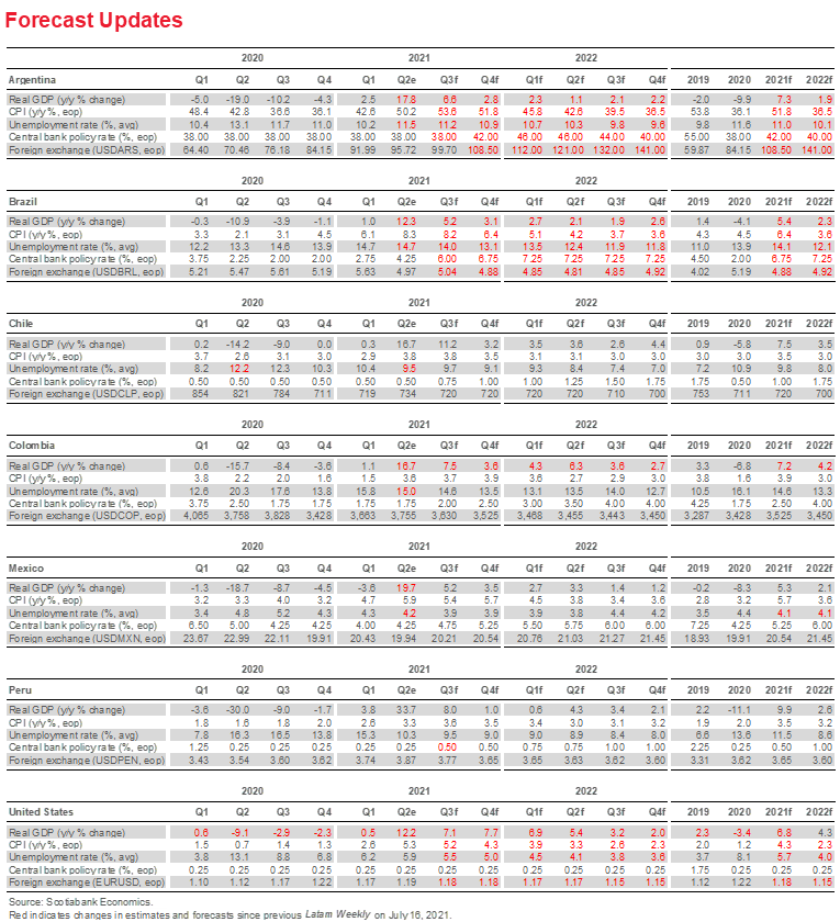 - Policy rate hikes in Mexico and Peru in response to rising inflation highlight the challenges facing Latam central banks.