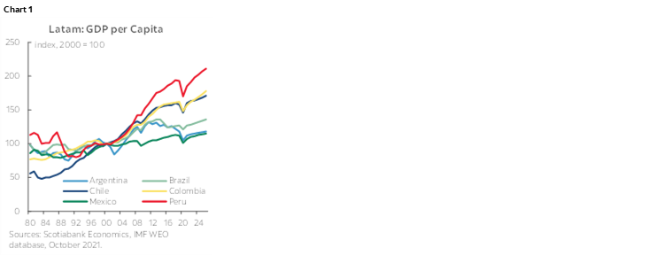 But, even while Latam growth rates (as opposed to levels) are expected to return to pre-pandemic levels going forward, a critical challenge remains. This is the “old challenge” alluded to in the title of needing to raise potential growth rates in order to boost per capita incomes given the region's higher rate of population growth and address the high level of inequality that has long characterized the Latam region. Just as questions linger over the fate of President Biden’s Build Back Better plan, which languishes in Congress, the challenge for the Latam region is to build back better by raising long-term growth.