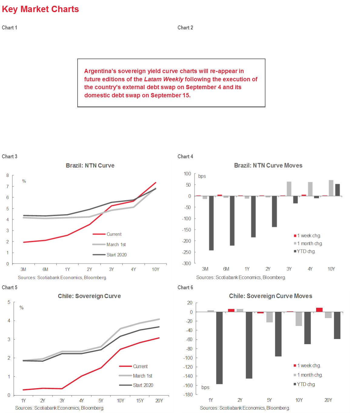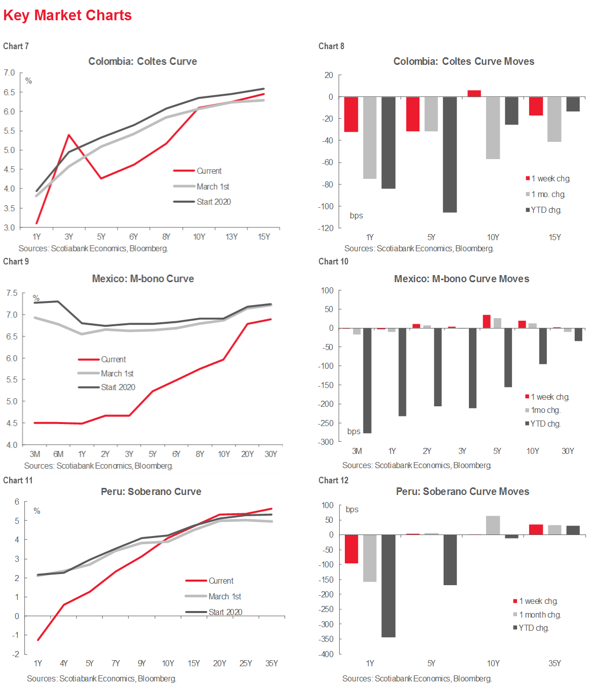 These reports are provided to you for informational purposes only. This report is not, and is not constructed as, an offer to sell or solicitation of any offer to buy any financial instrument, nor shall this report be construed as an opinion as to whether you should enter into any swap or trading strategy involving a swap or any other transaction. The information contained in this report is not intended to be, and does not constitute, a recommendation of a swap or trading strategy involving a swap within the meaning of U.S. Commodity Futures Trading Commission Regulation 23.434 and Appendix A thereto. This material is not intended to be individually tailored to your needs or characteristics and should not be viewed as a “call to action” or suggestion that you enter into a swap or trading strategy involving a swap or any other transaction. Scotiabank may engage in transactions in a manner inconsistent with the views discussed this report and may have positions, or be in the process of acquiring or disposing of positions, referred to in this report.