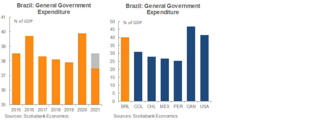 Loss aversion is one of the reasons why expenditure cuts are so difficult to implement—voters don’t like entitlement cuts. The Brazilian government spends a much higher share of GDP than what we see in most of the larger LATAM economies and is closer to the US or Canada in that regard than to its regional peers. In an economy where the government is already large, and which is struggling to kick-start growth, the solution to fiscal problems should focus on cutting public spending rather than increasing taxes. This is especially true in Brazil, where a large government hasn’t achieved particularly strong results in infrastructure quality, education, or growth.