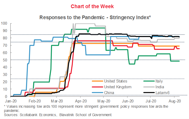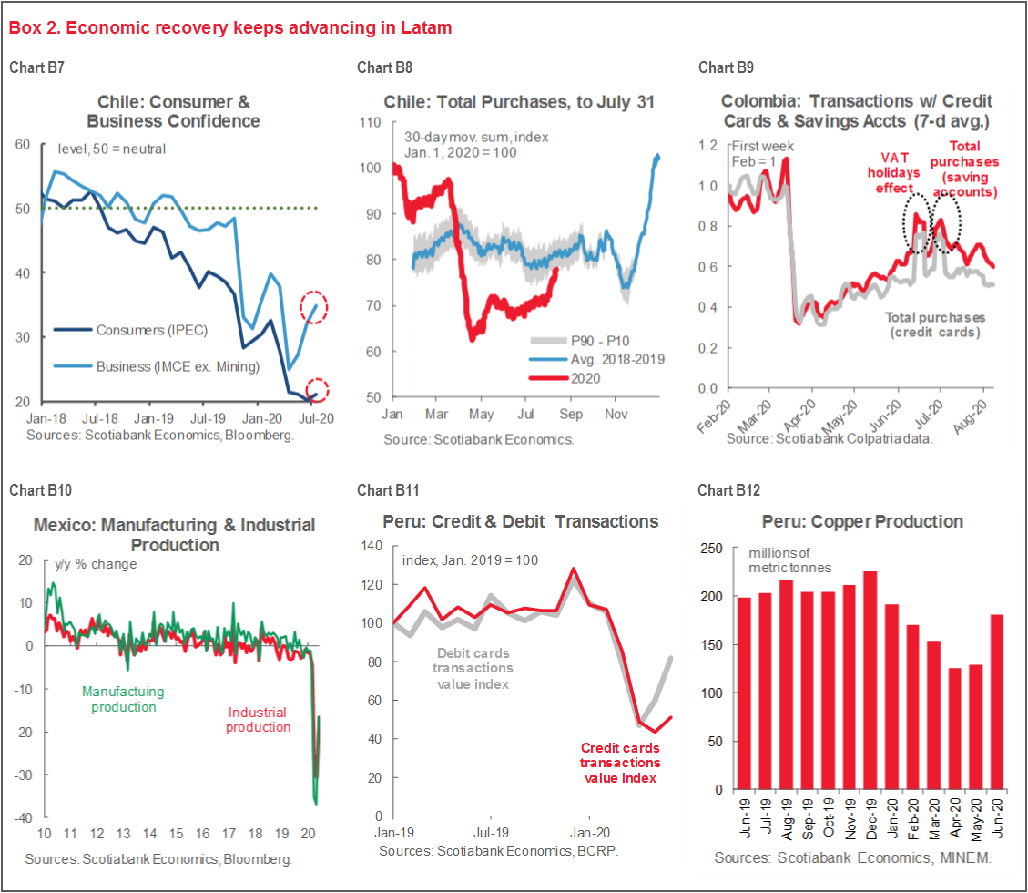Although pandemic control measures in Latam remain amongst the strongest in the world, the region is still one of the main global hotspots for COVID-19, with relatively poor indicators and new outbreaks. Nevertheless, the Latam-6 economies continue to rebound, but further progress on economic re-opening is going to get harder unless the pandemic is brought under control.