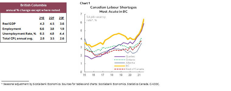 Labour shortages limit gains. BC recorded a record all-industry job vacancy rate in September 2021, as well as the highest one in Canada (chart 1). Though that certainly reflects the province’s elevated share of lockdown-vulnerable high-contact sectors, shortages are particularly acute in BC’s construction industry, a trend that could put a ceiling on capital investment gains.
