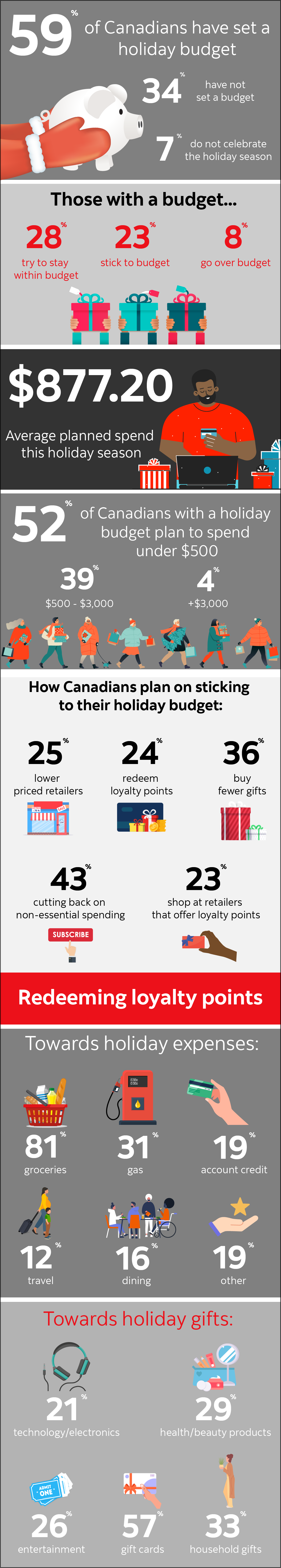 To stay within their budget, more than half of those surveyed plan to redeem their loyalty points and put them towards holiday expenses and gifts, according to Scotiabank’s Holiday Spending Poll.