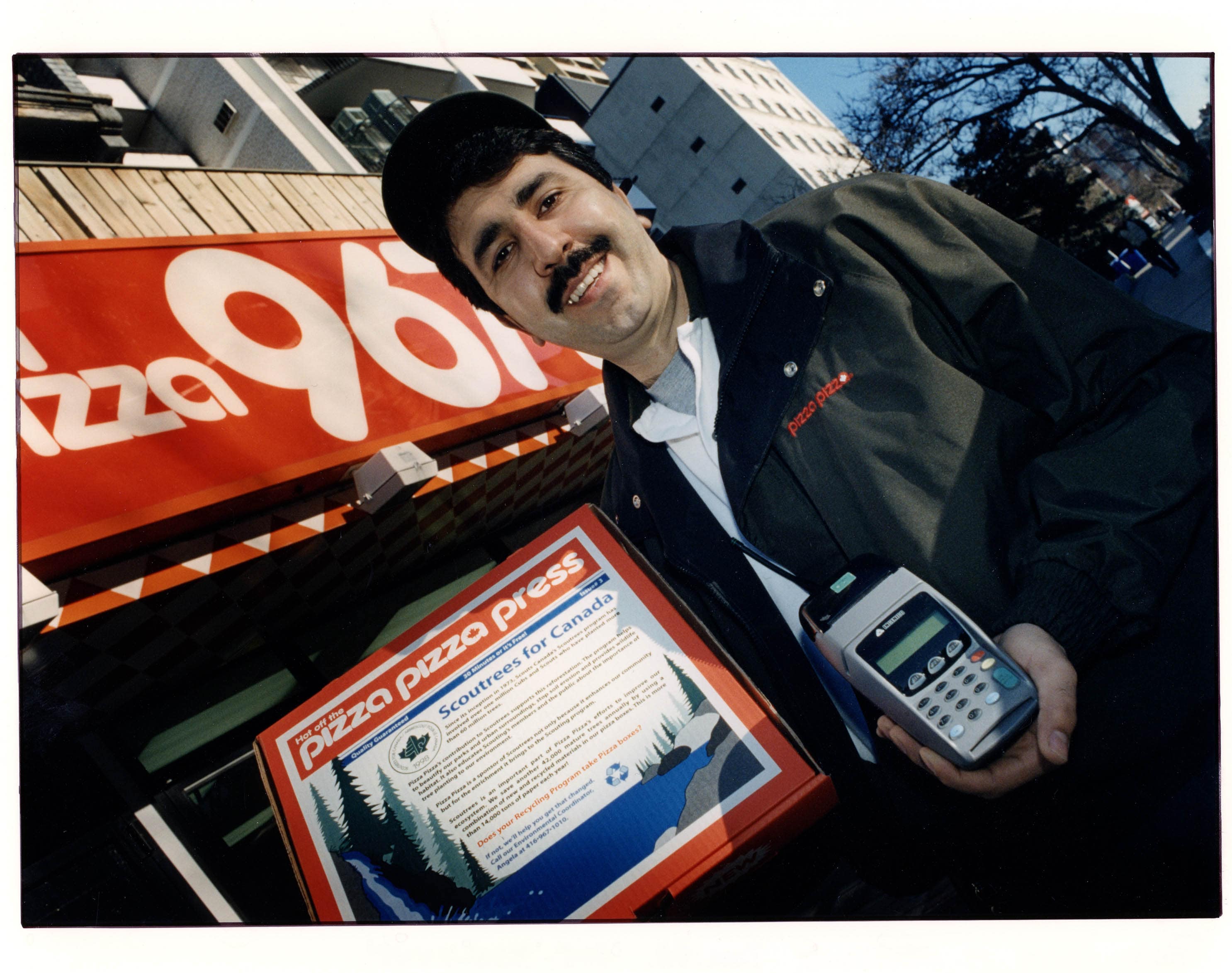 1998: Scotia 2020 Mobile Canada's first hand-held, wireless point of sale (POS) terminal, designed to revolutionize the home delivery market was piloted by Scotiabank, Pizza Pizza, Rogers Cantel and IVI Checkmate. After the pilot, it was launched across Canada in September 1999.
