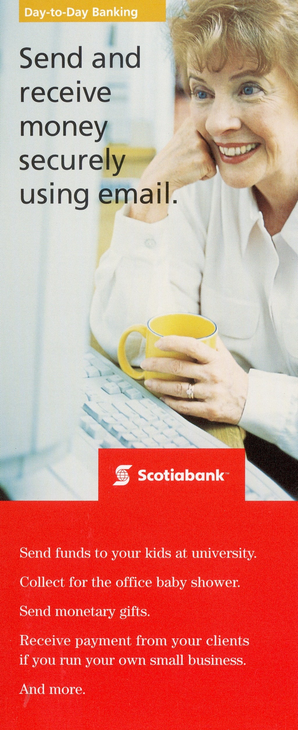 P2P E-mail Money Transfer advertisement, 2002. Courtesy of the Scotiabank Archives.