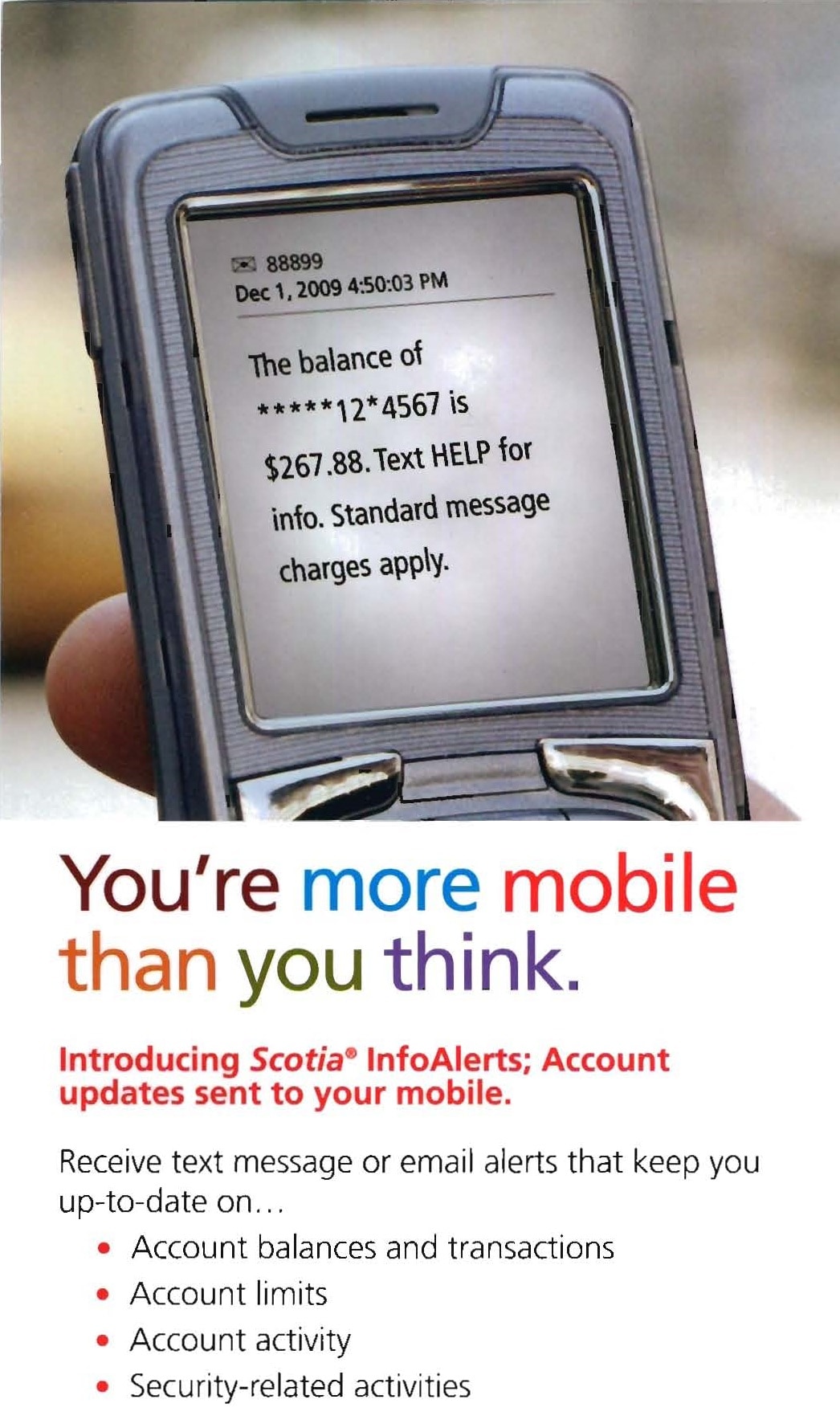 Scotiabank InfoAlerts advertisement, 2009. Courtesy of the Scotiabank Archives. |