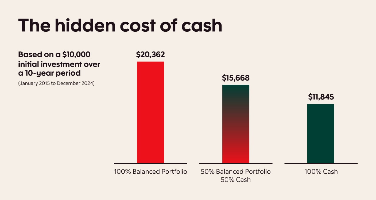 Holding a portion of your long-term savings in cash can actually reduce overall performance of your portfolio – something commonly referred to as “cash drag”.