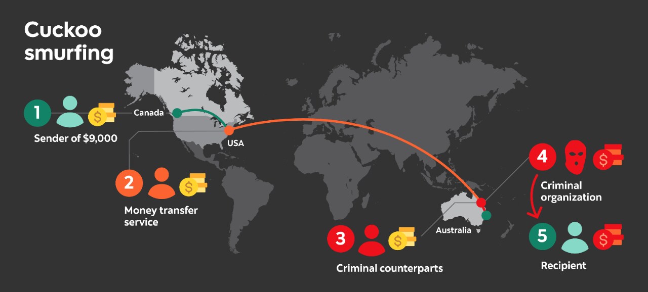 With cuckoo smurfing, criminals use the bank accounts of multiple unwitting third-party consumers who are expecting money to come into their accounts. Only they don't realize the money deposited is from criminal activity.