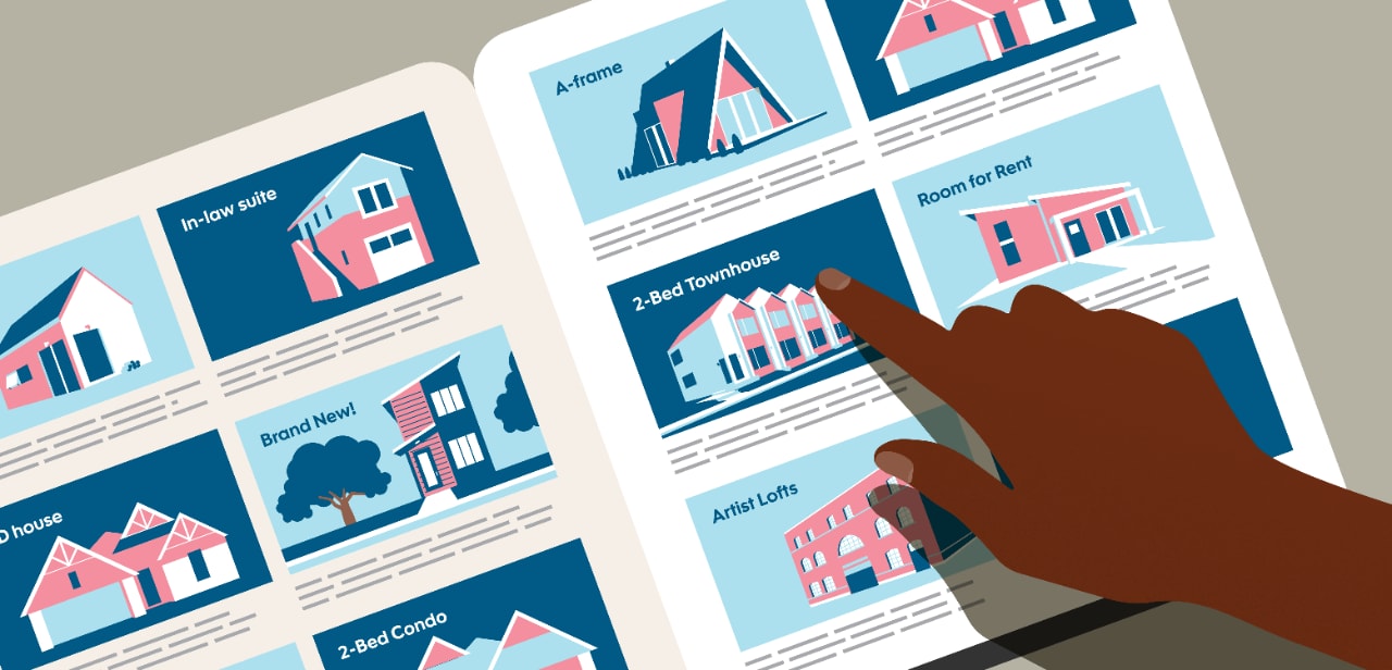Houses. Houses include homes built for single families, as well as townhomes (a row of connected houses) and duplexes (two side-by-side units in one building).