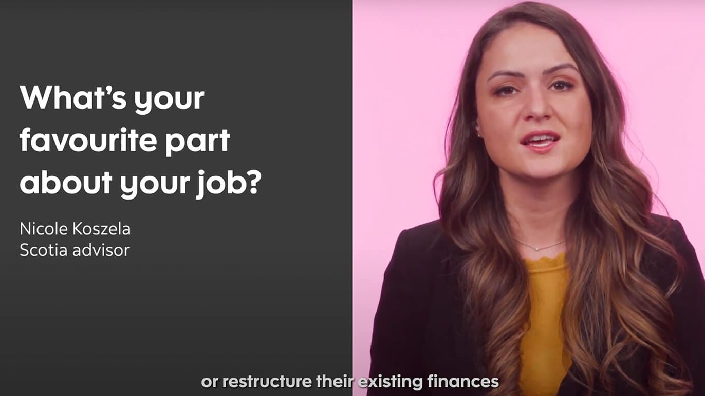 with an optional subtitleMeet Scotia Advisor Nicole and hear all about how her favourite part of her job is helping customers reach their goals.