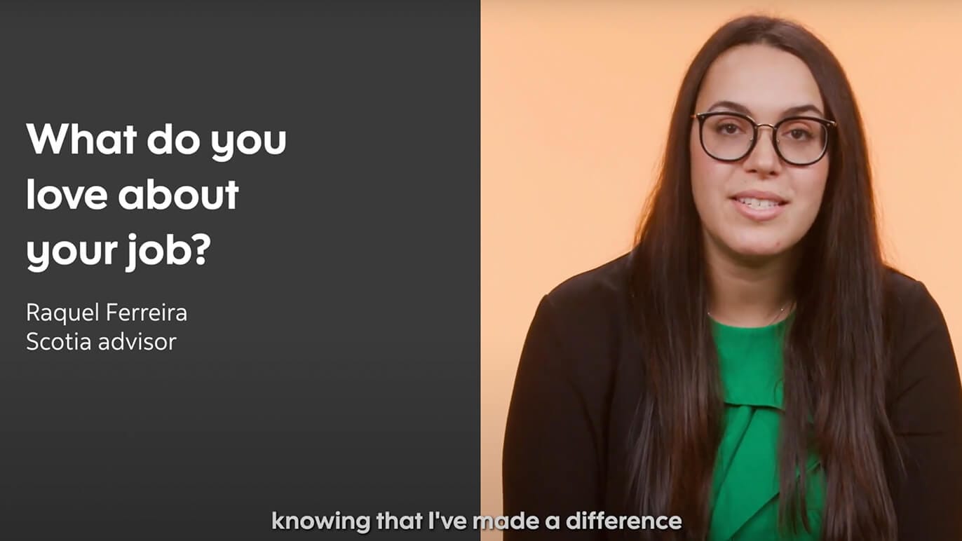 with an optional subtitleMeet Scotia Advisor Raquel and hear what she loves the most about her job and how she has been helping her customers during the pandemic.