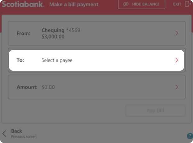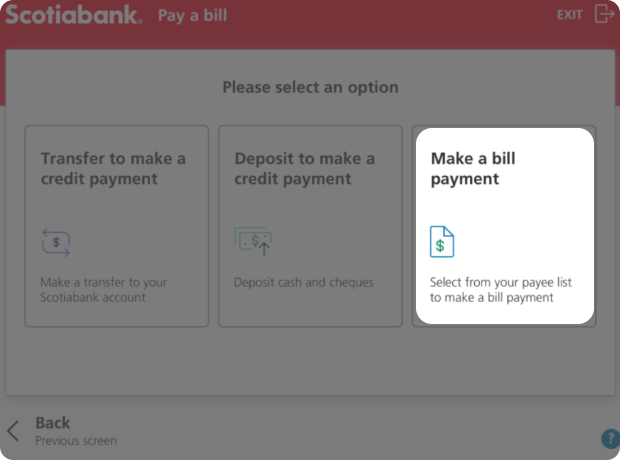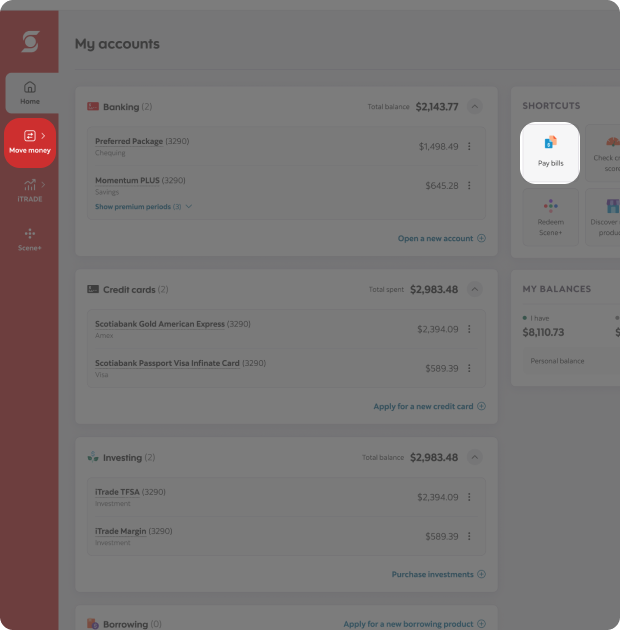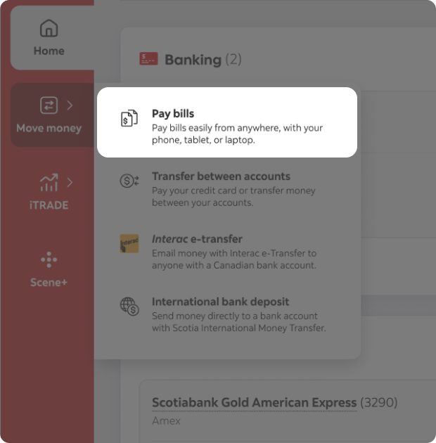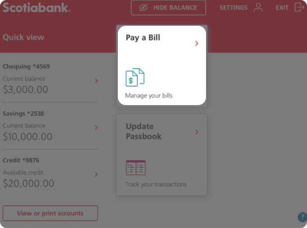 Learn how to pay a bill using your computer, tablet, smartphone, an ABM, or TeleScotia.