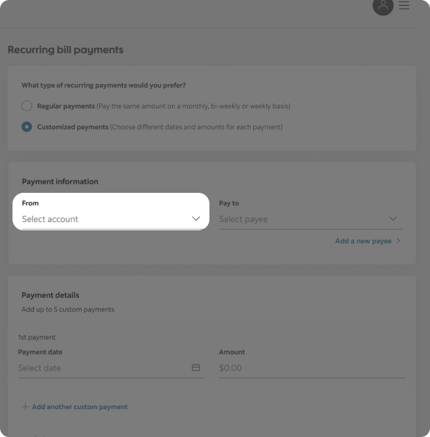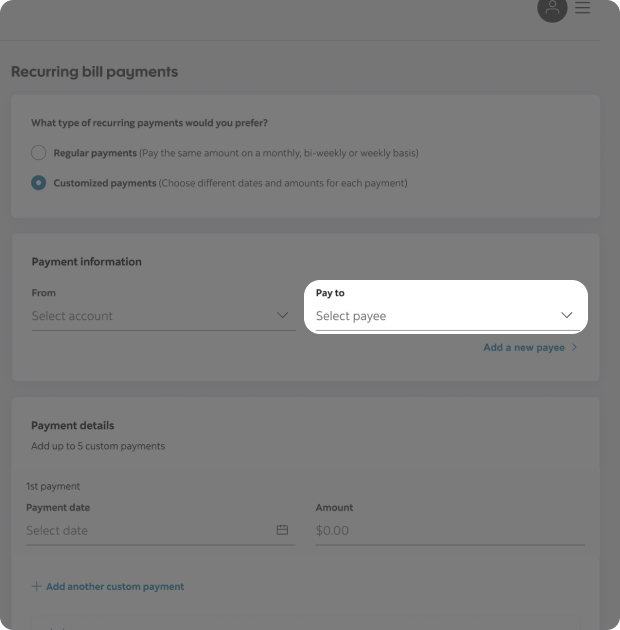 To pay a bill to an account you haven’t paid before, you’ll need to add the utility company, credit card, or other bill payment company to your list of payees.