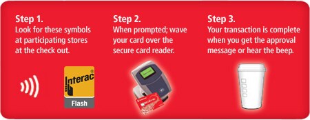 Make quick, contactless and secure purchases with your ScotiaCard debit card. Simply hold your debit card over the card reader and pay directly from your bank account with Interac Debit. Make purchases of $250 or less – no need to insert your card, enter your PIN or wait for change!