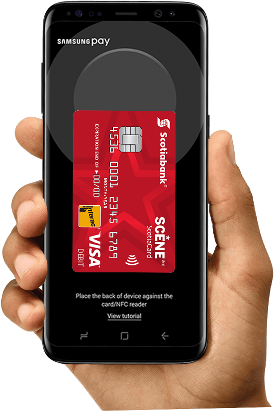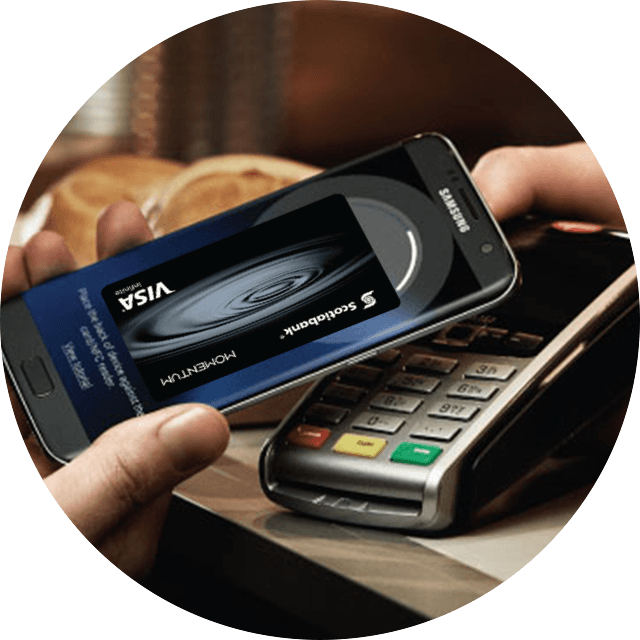 Make on-the-go payments quickly with Samsung Pay and your Scotiabank®* debit, Visa*, American Express and Prepaid cards.