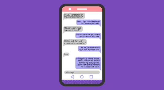 The following images show two text message (SMS) exchanges. Can you identify which exchange is a romance scam?